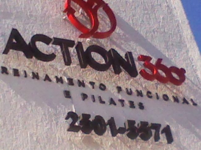 As letras foram feitas com chapa galvanizada e receberam pintura automotiva e possuem também iluminação de LEDs. As letras de chapa galvanizada foram instaladas por meio de pinos de fixação e as letras em acrílico por meio de colagem